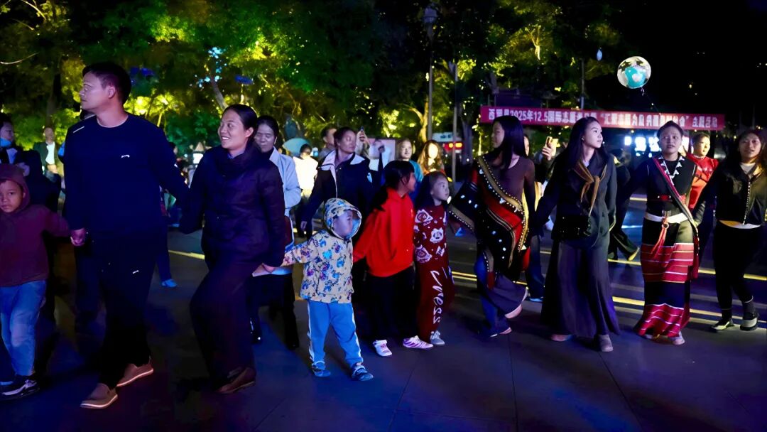 周末的夜晚,两场篝火晚会将活动推向高潮。夜幕中,篝火被点燃,古老的鼓点与现代的节奏在此交汇,所有人被卷入“佤迪”的热情漩涡。火光跃动在每一张笑脸上,陌生的隔阂瞬间消融,只剩下最纯粹的快乐随舞步飞扬,让西盟的夜,沸腾在生命的律动之中。