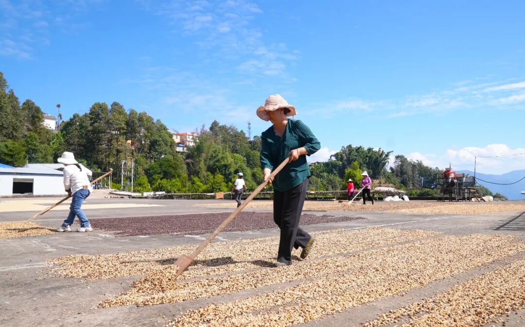 力所咖啡农民专业合作社晾晒咖啡豆。吴元皓 摄