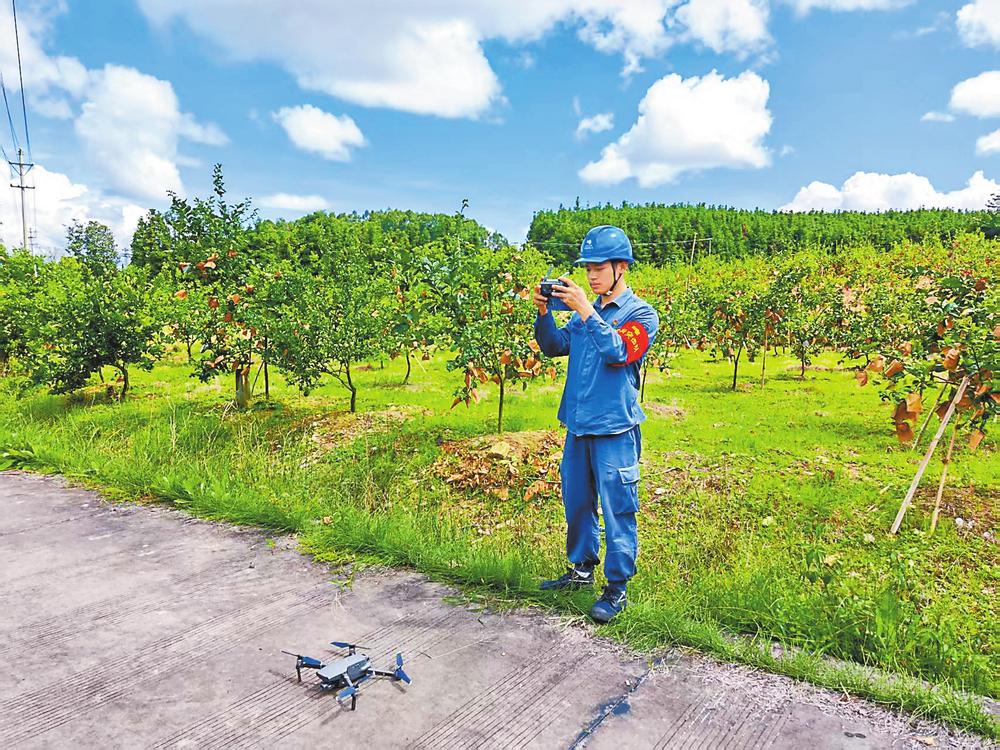 瑞丽供电局党员突击队队员进行无人机作业。蔡少余 摄