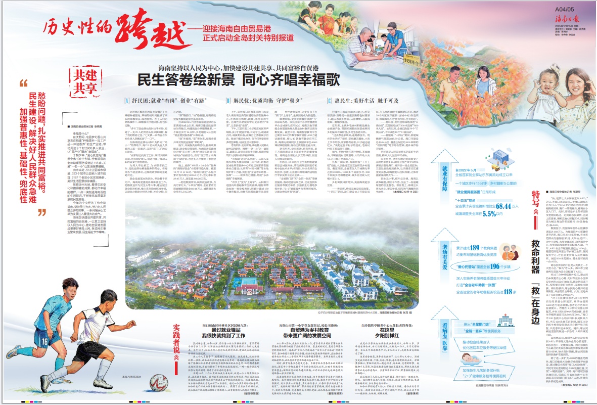 海南加快建设共建共享、共同富裕的自贸港,一以贯之坚持以人民为中心,推动自贸港发展成果更好惠及人民,各项民生事业繁荣发展,民生福祉节节攀高。