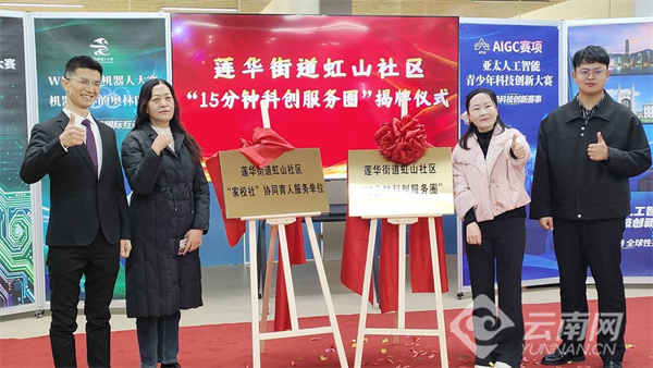 此次活动在莲华街道虹山社区的大力支持下举行,就是为了进一步推动“15分钟科创服务圈”落地,为社区青少年提供优质科技教育服务。现场,“莲华街道虹山社区15分钟科创服务圈”项目揭牌。该项目积极响应国家加强中小学科学教育与社区服务的政策精神,旨在将优质科创课程、师资与活动资源引入社区,打造“家门口的科创课堂”,构建学校、家庭、社区三位一体的青少年科创培育体系。