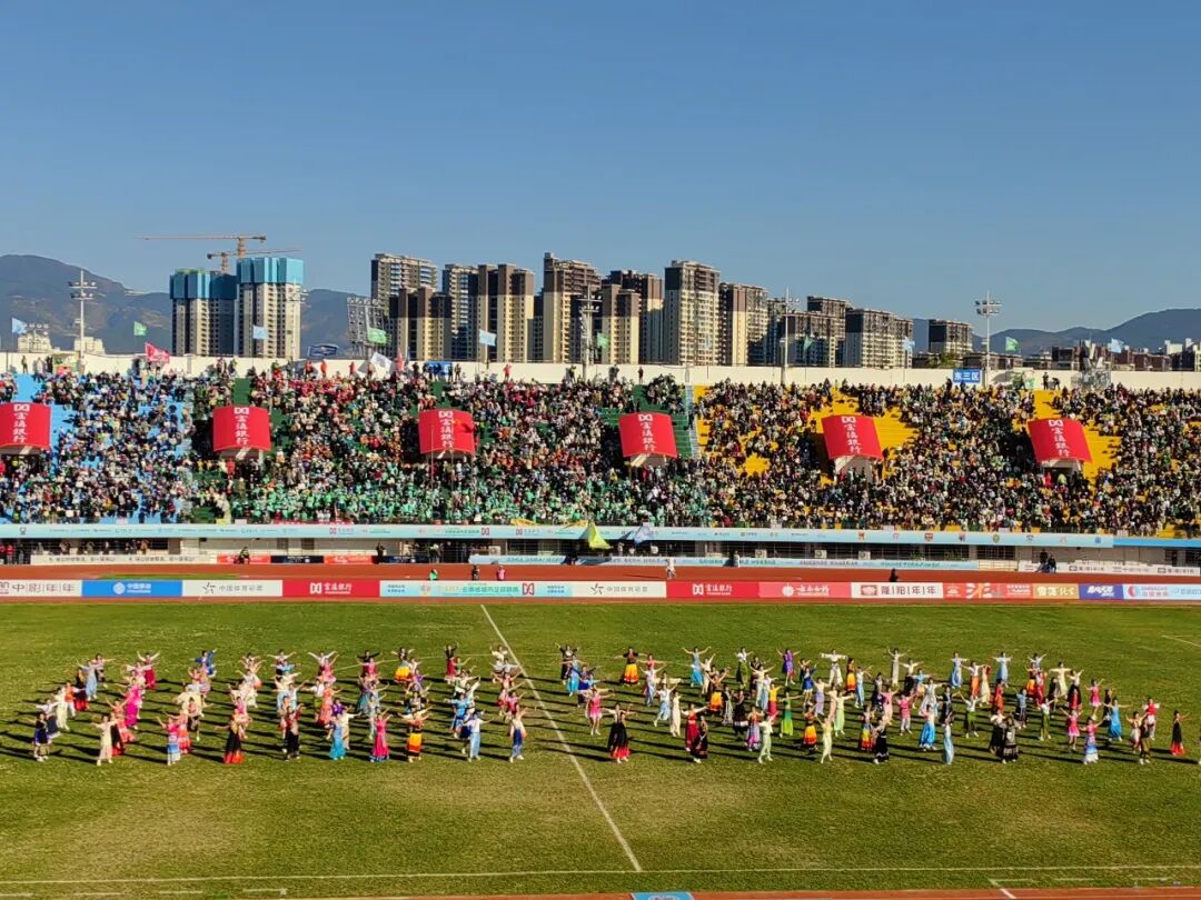 从幕后服务到台前展示,保山学院学子以多元文艺形式点燃赛场激情。开幕式上,民族大团结舞以整齐划一的舞步和绚丽多彩的服饰,展现出民族团结的昂扬气象;比赛间歇,活力四射的啦啦操表演用跃动的节奏和灿烂的笑容,持续为球员与观众加油助威;赛场外“让青春·亮场”文艺展演环节,学子们则以清澈歌声唱响青春情怀,进一步凝聚赛场情感共鸣。这些表演融体育精神与艺术魅力于一体,为紧张的赛事增添了热烈而温情的文化氛围。