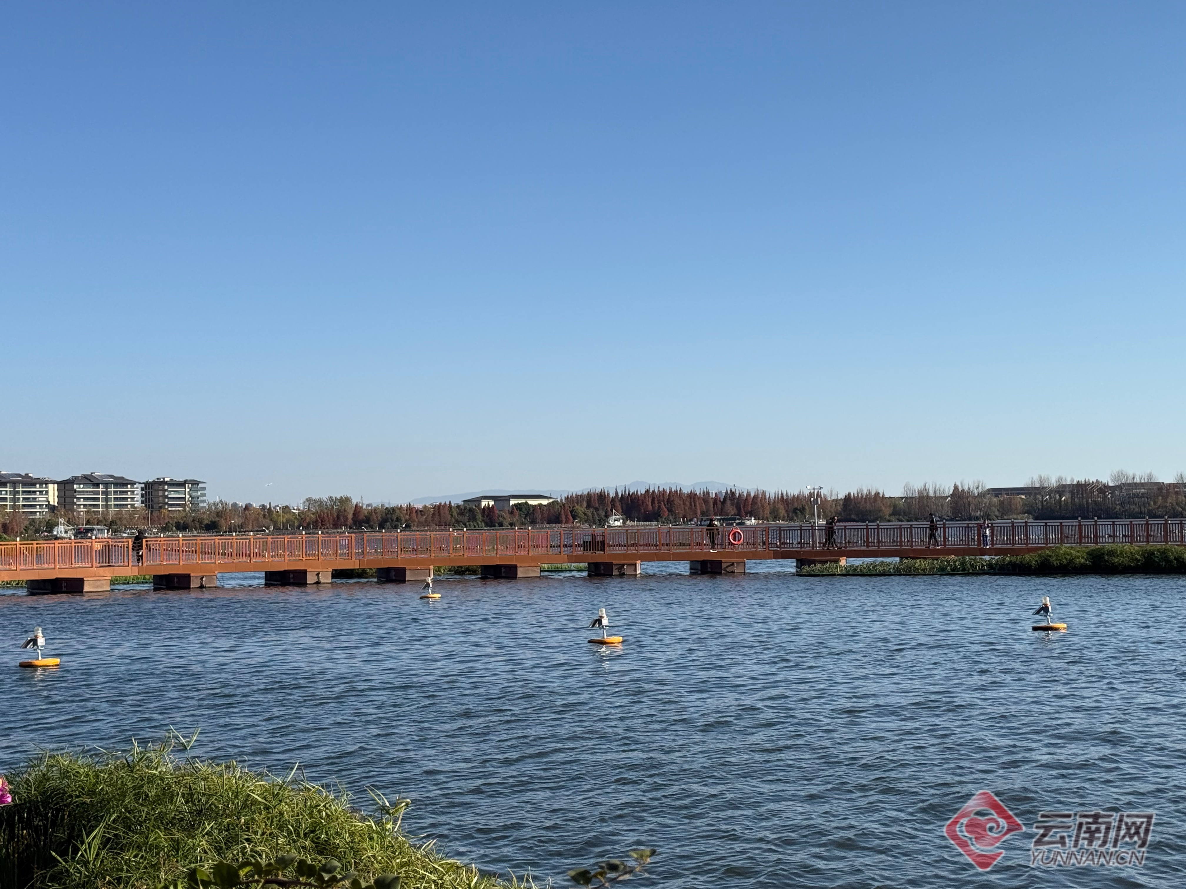 云南网讯(记者 张琦敏 杨苑)初冬的滇池湖畔,湖水泛着细碎的银光,海鸥时而掠过水面、时而盘旋空中。湿地公园里,游人三两漫步,或驻足拍照,沉浸在这幅动人的生态画卷之中。