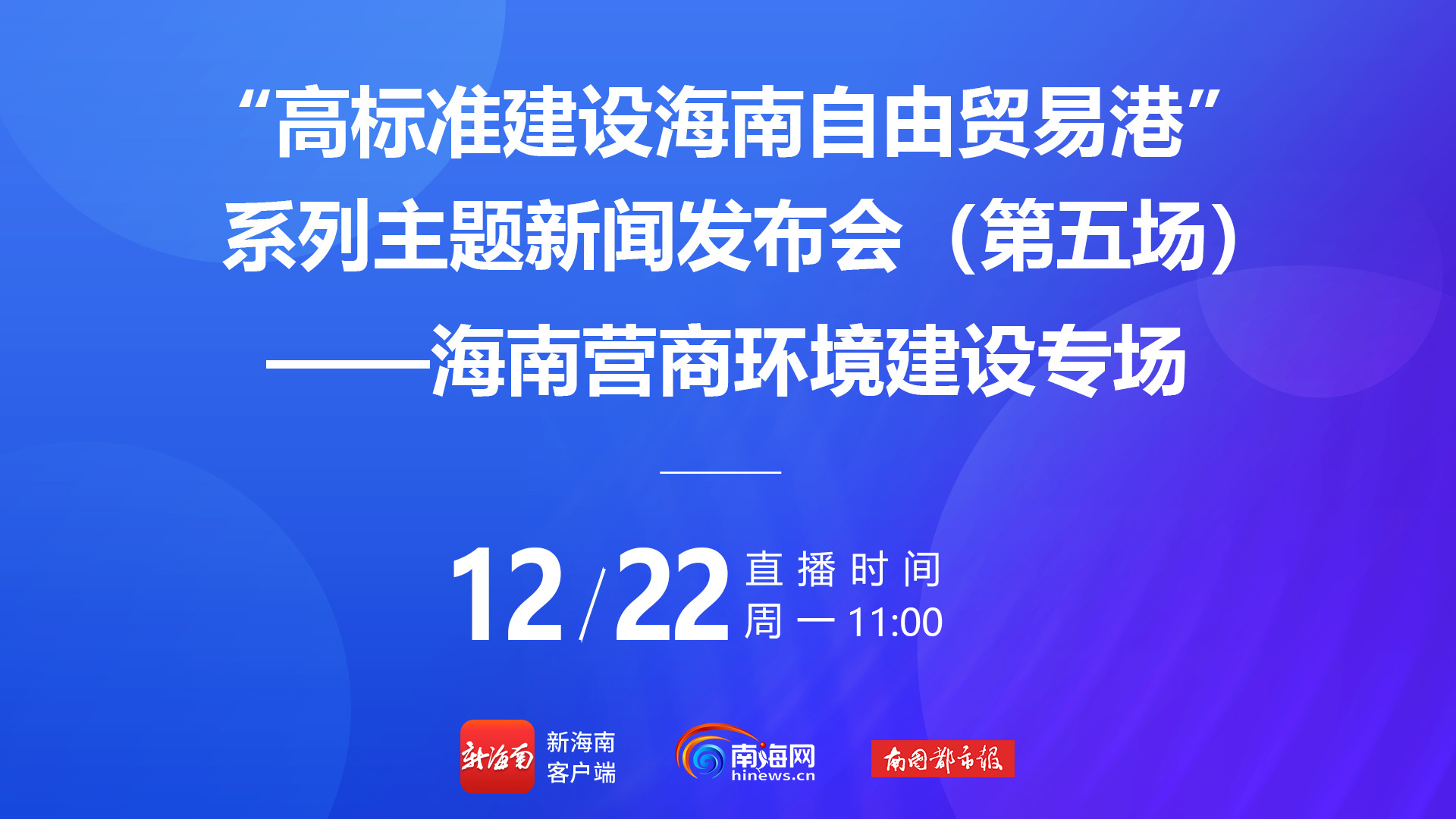 直播预告丨22日11时,海南营商环境建设专场发布会将举行