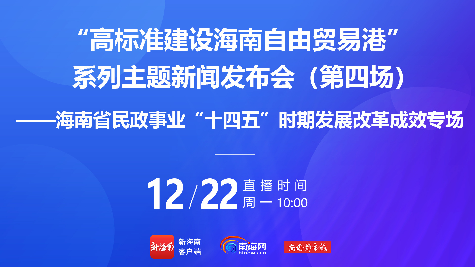 直播预告丨22日10时,海南省民政事业“十四五”时期发展改革成效专场发布会将举行