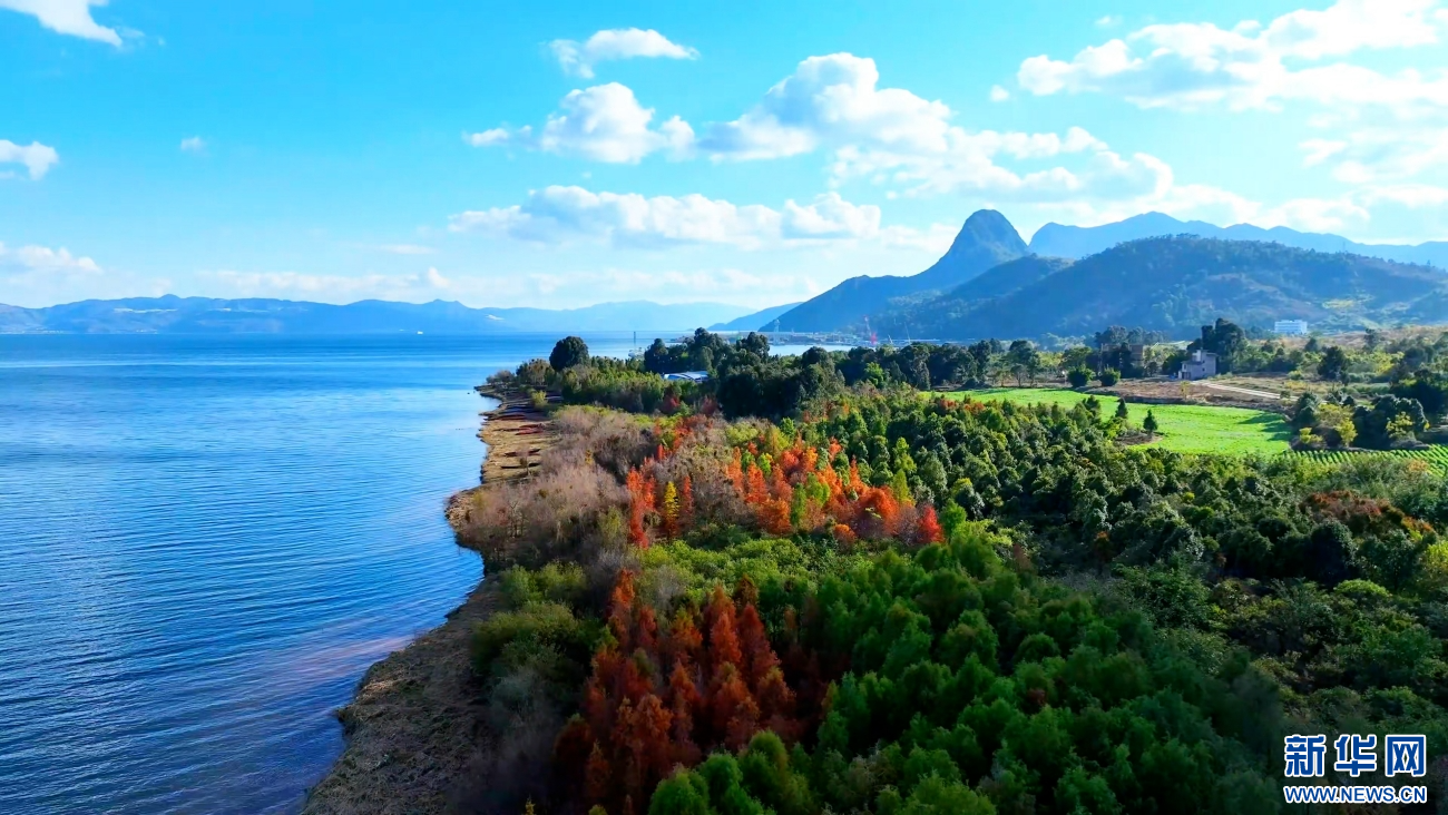 原标题:冬日抚仙湖:红杉灼灼 碧水悠悠