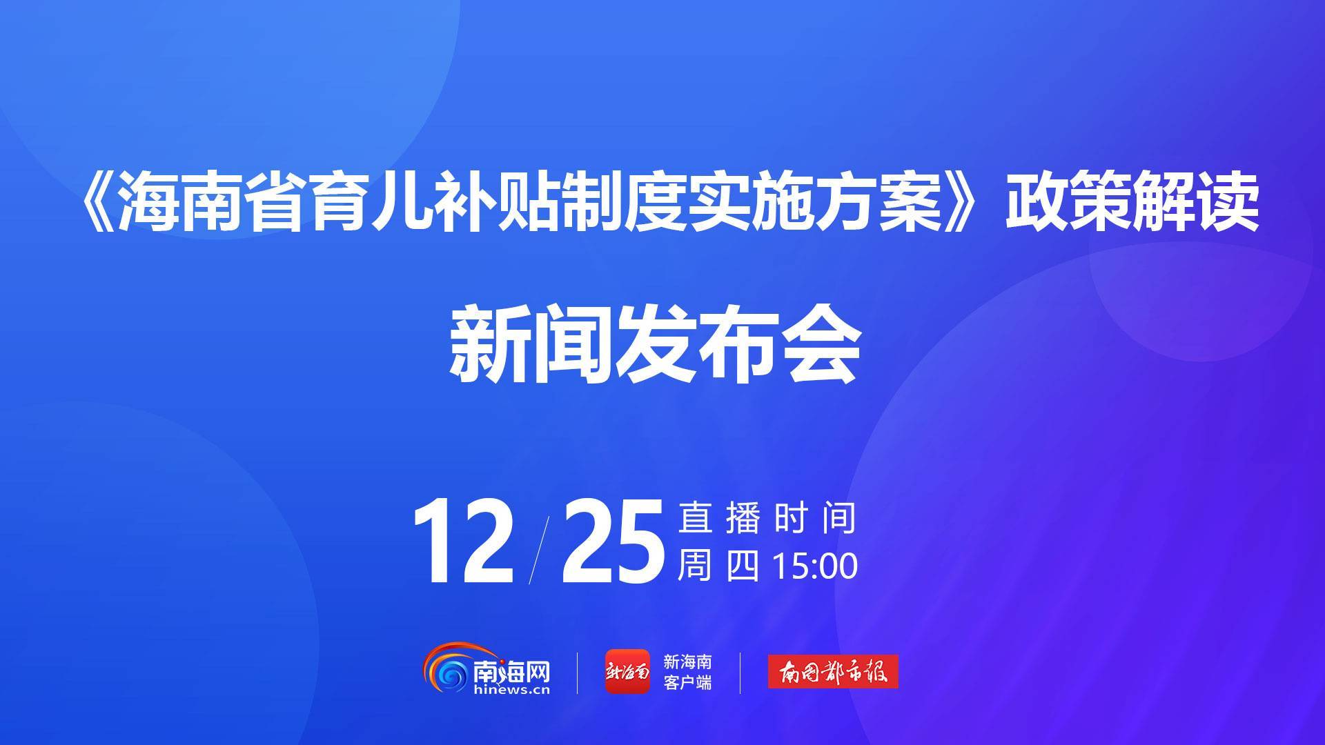 直播预告 | 事关海南育儿补贴方案 25日下午关注政策解读新闻发布会