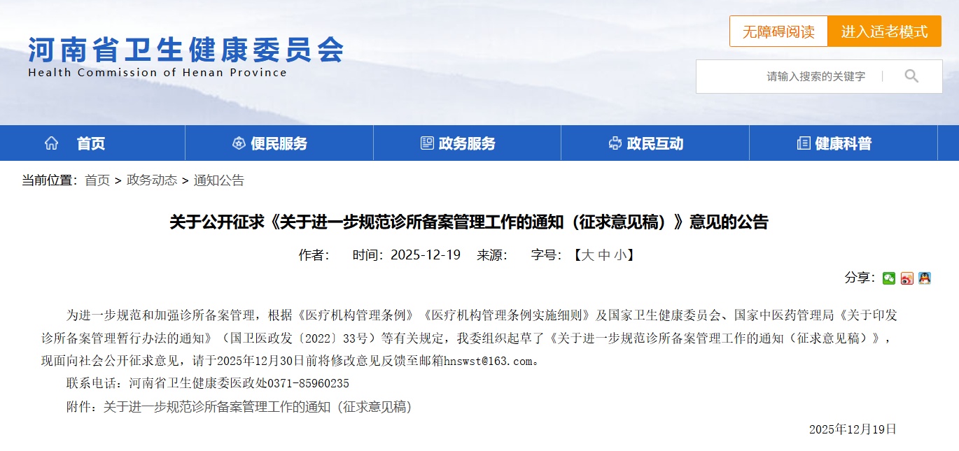 原标题:让家门口的诊所更靠谱!河南公开征求意见