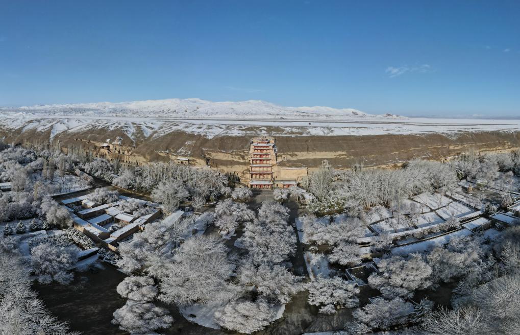 敦煌莫高窟景区雪景(无人机照片)。新华社记者 张智敏 摄
