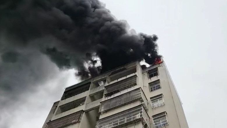 海口市秀英区通华小区一楼顶发生火灾 幸无人员伤亡