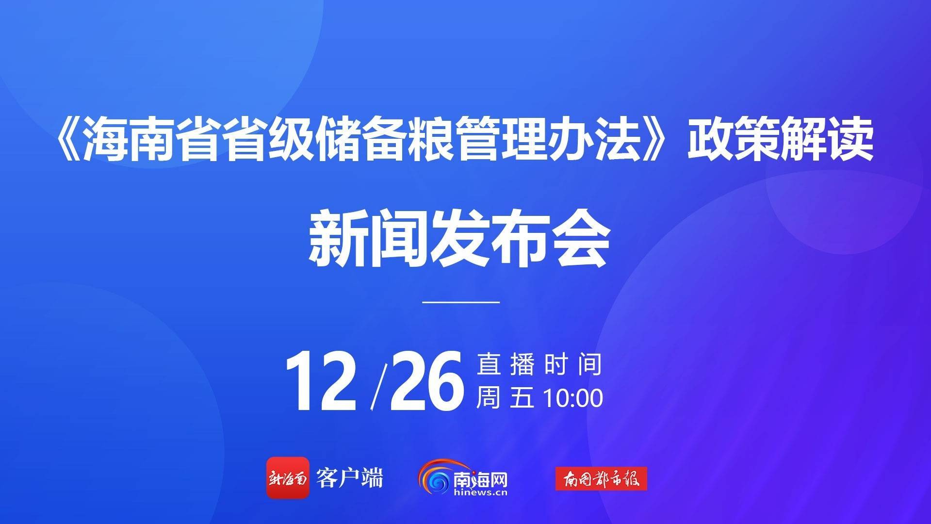 直播回放丨《海南省省级储备粮管理办法》政策解读新闻发布会