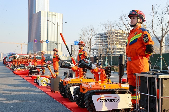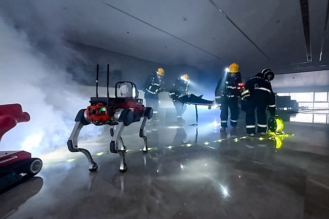 “还有多名群众被困,无法自行逃生……”现场侦察传来信息。“大荷载消防无人机实施外部控火,灭火救援攻坚组强攻搜救、内攻侦察机器狗协同作战……”随着现场指挥员一声令下,各类高精尖装备迅速投入“战斗”。针对此次超高层建筑灭火应急救援综合演练中的多个危局及难点,省消防救援总队亮出“硬核装备矩阵”,构建了“上下夹攻、内外合击、空地协同”的救援体系,让救援更精准、更高效。演练现场,各部门、各单位的联动指令此起彼伏,一场跨区域、跨行业的协同救援高效推进。