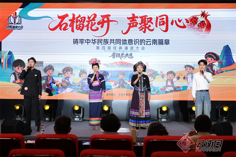12月27日上午,第四届经典诵读大会总决选在云南文学艺术馆举行开幕式。第四届经典诵读大会以“石榴花开·声聚同心——铸牢中华民族共同体意识的云南篇章”为主题,面向全省少年儿童及语言艺术爱好者,设有小学低龄组(1-3年级)、小学高龄组(4-6年级)、中学组(初高中学生)、专业组(各高校学生)、集体组(4人及以上)及教师组(各公立学校教师)。