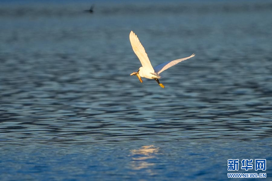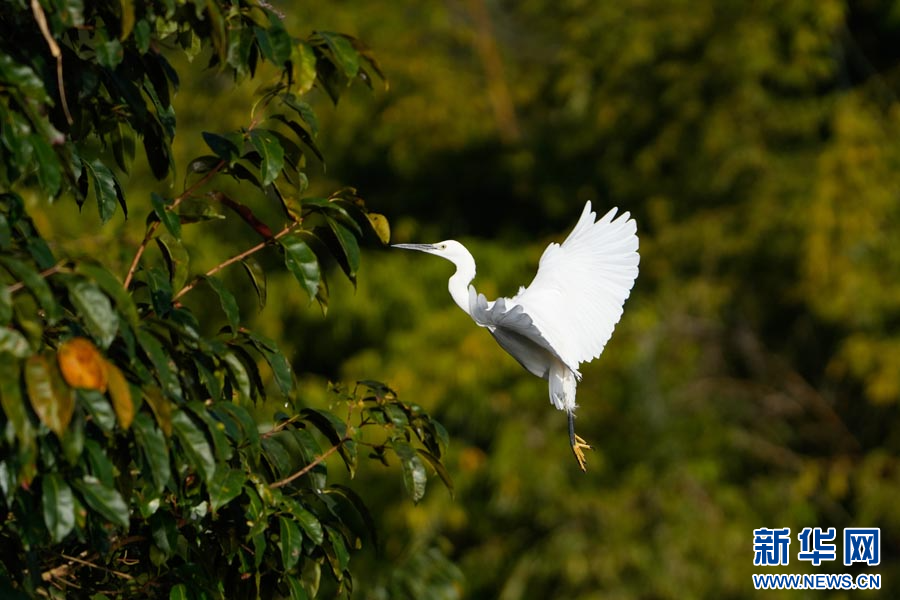 展翅飞行的白鹭(12月27日摄)。新华网发(方雯青 摄)