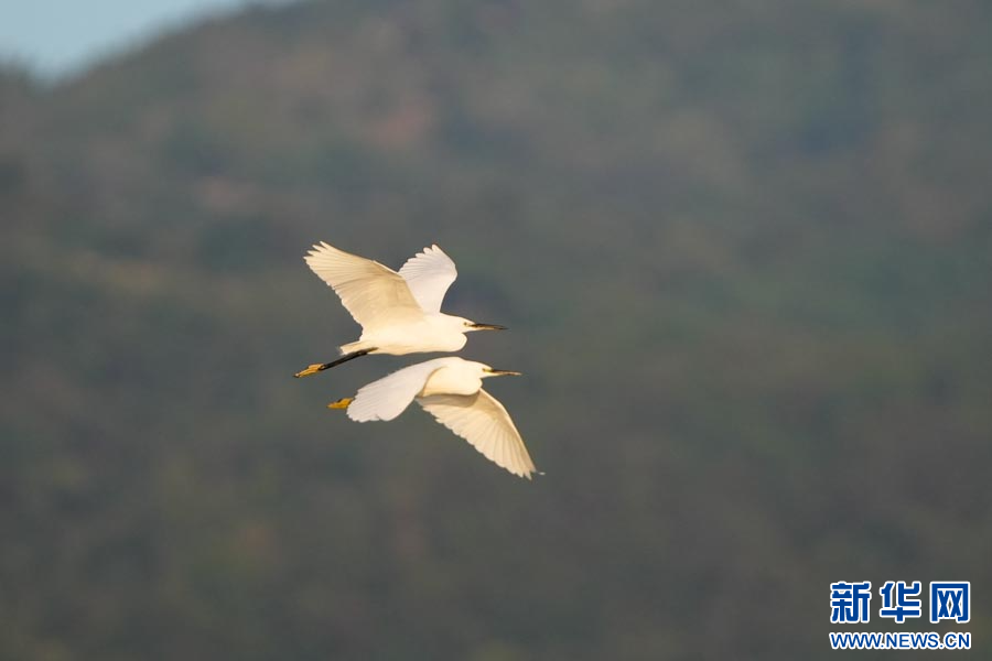 比翼双飞的白鹭(12月27日摄)。新华网发(杨龚云 摄)