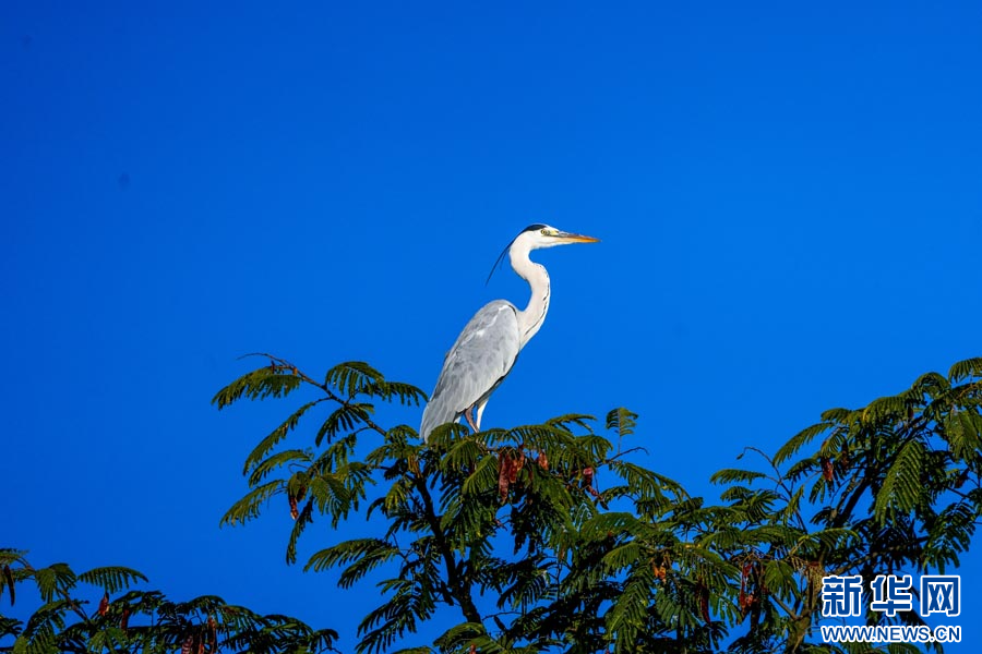 苍鹭在树枝上休息(12月27日摄)。新华网发(段宗智 摄)
