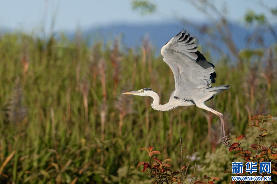 苍鹭展翅准备飞行(12月27日摄)。新华网发(段宗智 摄)