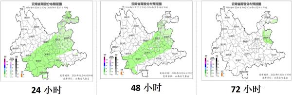 1月6日20时到1月7日20时:昭通市、昆明市、楚雄州南部、玉溪市、文山州北部、红河州、普洱市、西双版纳州、临沧市南部阴有分散小雨,其中,昭通市、曲靖市、昆明市东北部的高海拔地区阴有小雪或雨夹雪,其他地区多云。