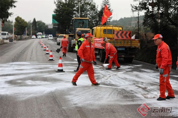 迪庆公路局及时发布路况信息、交通管制及绕行提示,引导公众安全出行。宣威公路分局及时处治S306宣文线三星坡路基沉陷隐患,并增设警示标志和防护设施;昭阳公路分局分组同步推进三条主干线抗冰作业,彝良公路分局集中力量攻坚G352线虎丘至蚂蝗沟段冰冻路段。