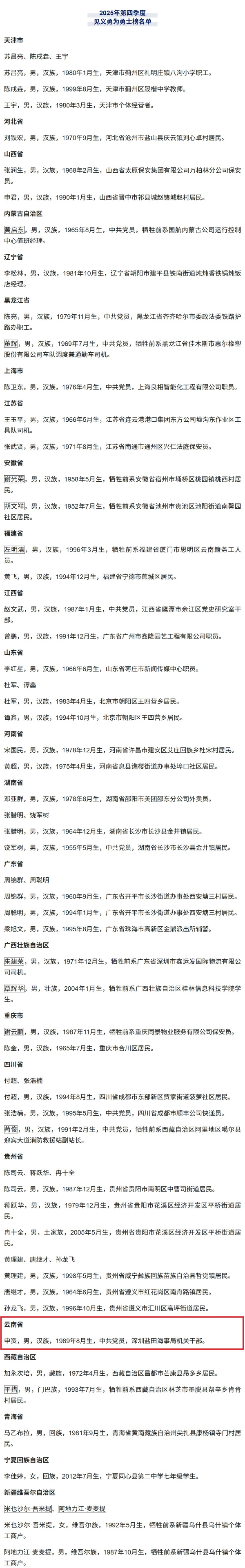 在云南救下5人的申资上榜。一起来看他的见义勇为事迹↓↓