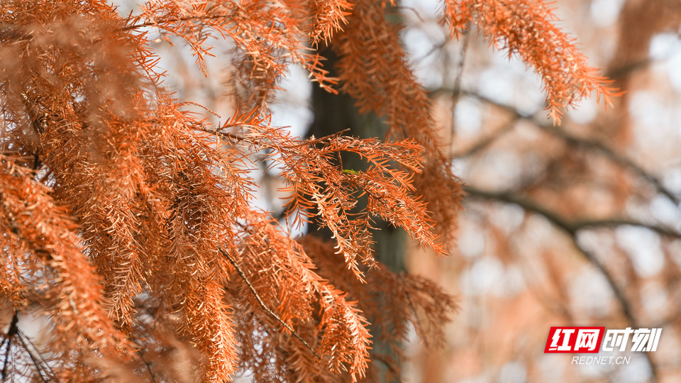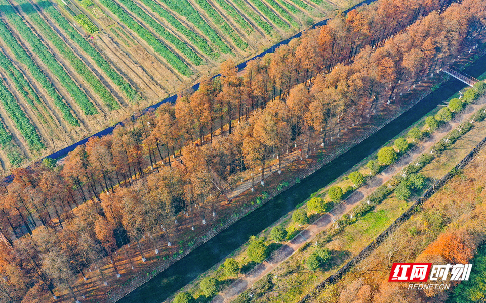 红网时刻新闻1月13日讯(记者 宋美君 李璐 实习生 刘赢 杨安琪)冬日暖阳普照,衡阳市雁峰区岳屏镇隆桥村幸福河两岸的水杉林换上赭红与金黄交织的“盛装”,宛如一幅徐徐展开的天然油画,成为市民争相探访的冬日秘境。