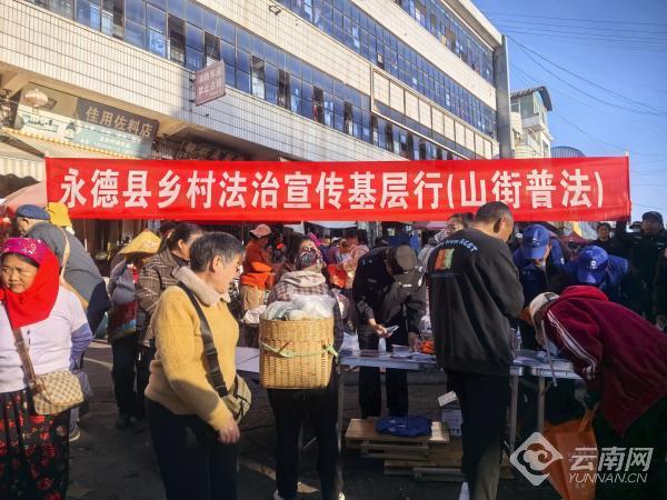 云南网讯(记者 赵岗 通讯员 龚林强)晨雾散尽时,云南省临沧市永德县境内30余条山街渐次热闹起来,与琳琅满目的商品摊位相映成趣的,是一个个独具特色的“法治驿站”。自2024年起,永德县锚定“产业发展、基础设施、社会治理”核心任务,将群众聚集的山街打造成普法主阵地,创新开展“乡村法治宣传基层行”活动,让法律知识随着山街的烟火气浸润民心。