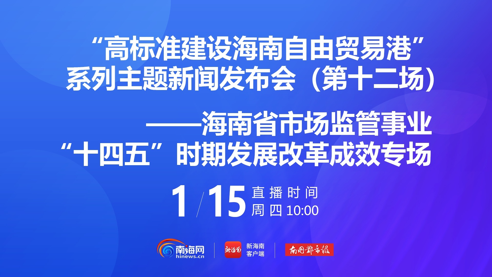 直播预告 | 15日10时,海南省市场监管事业“十四五”时期发展改革成效专场新闻发布会将举行