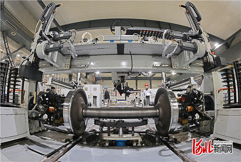 1月9日,轮对轴承智能压装机正在作业。