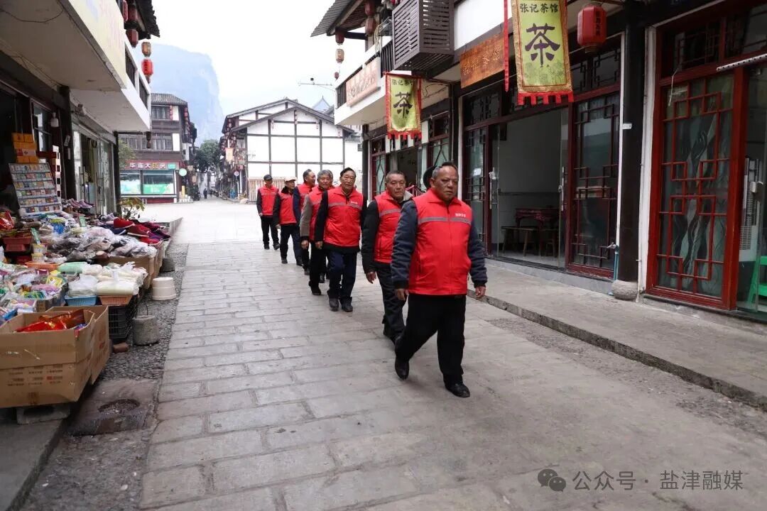 盐津县公安局豆沙派出所所长赵鑫介绍,作为国家级“枫桥式公安派出所”,豆沙派出所始终秉持“依靠群众、发动群众、团结群众”理念,组建“银发义警队”。这支由德高望重共产党员、退休干部、社区居民组成的队伍,承担社区巡逻、纠纷调解、游客引导等职责,成为派出所联系群众的关键纽带,助力警民协同共治,守护古镇平安。