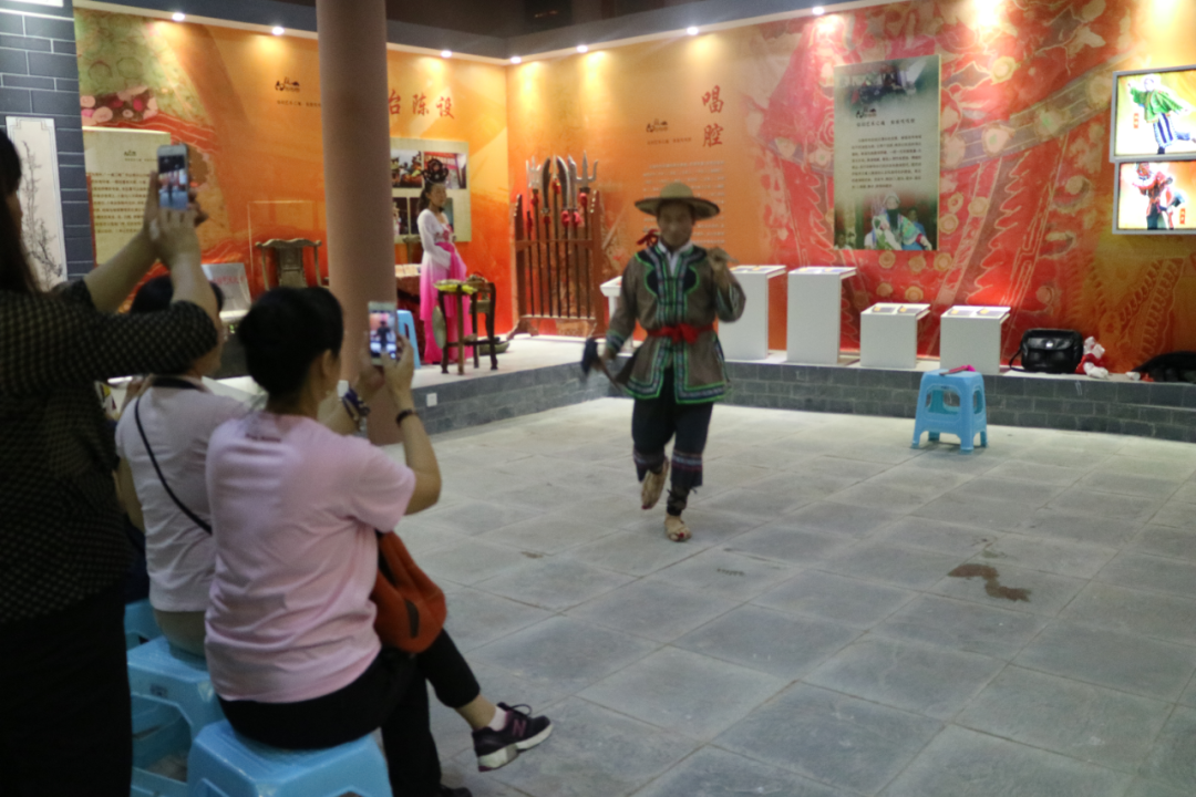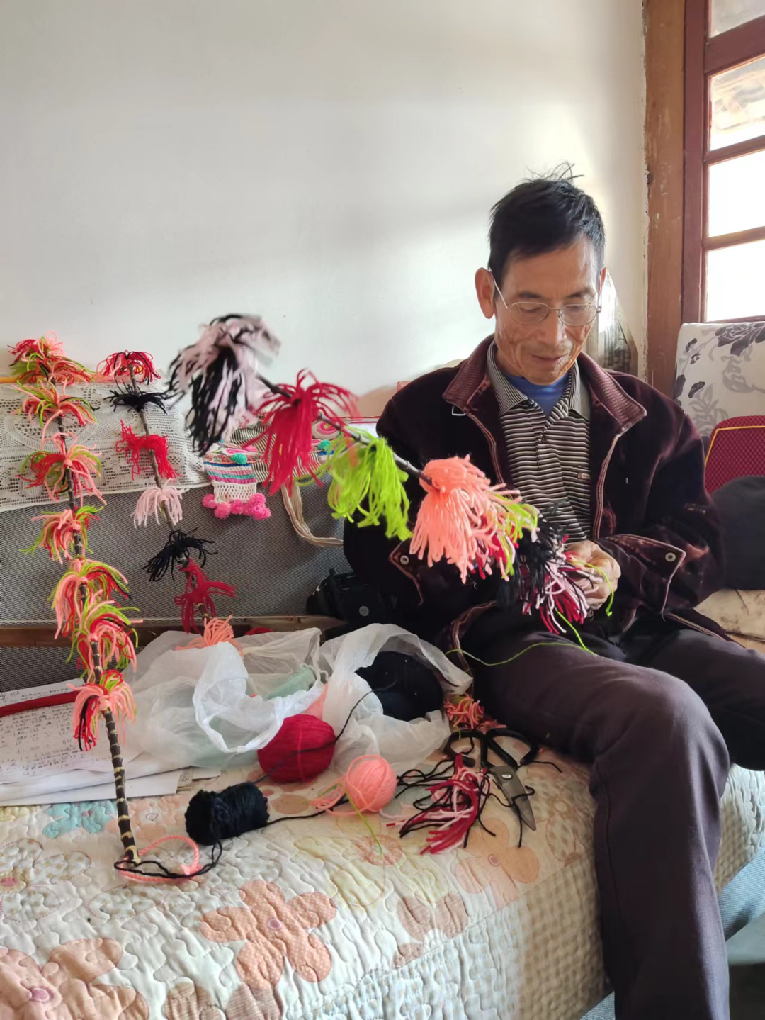 剧团初创时一穷二白,所有行头道具几乎全靠他巧手打造。从刀枪剑戟到马鞭帽盔,甚至鼓架梆子,他事无巨细,亲力亲为。他制作的《崔文瑞砍柴》全套道具已被大理州博物馆收藏,而他仍在不断为新戏添砖加瓦。这份从表演到制作的全能,体现了一位民间艺术大师对传统的彻底坚守与无私奉献。