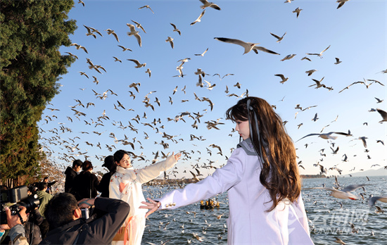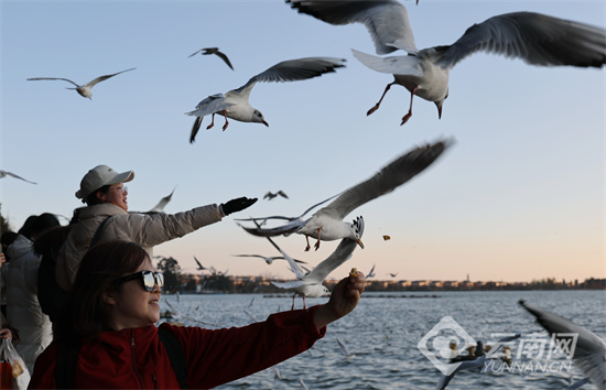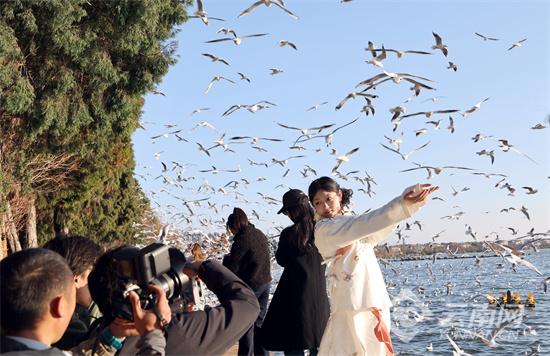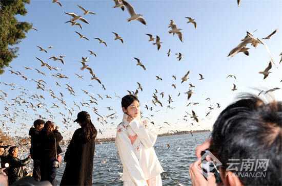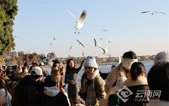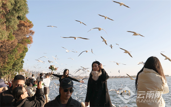 近日,昆明进入最佳观鸥期,滇池畔的海洪湿地成为热门打卡地。成群的红嘴鸥在此翩跹觅食,与层林尽染的水杉、碧波荡漾的湖水共同构成冬日限定画卷。这个冬天,不妨来昆明邂逅这群“白色精灵”,感受春城独有的冬日浪漫。
