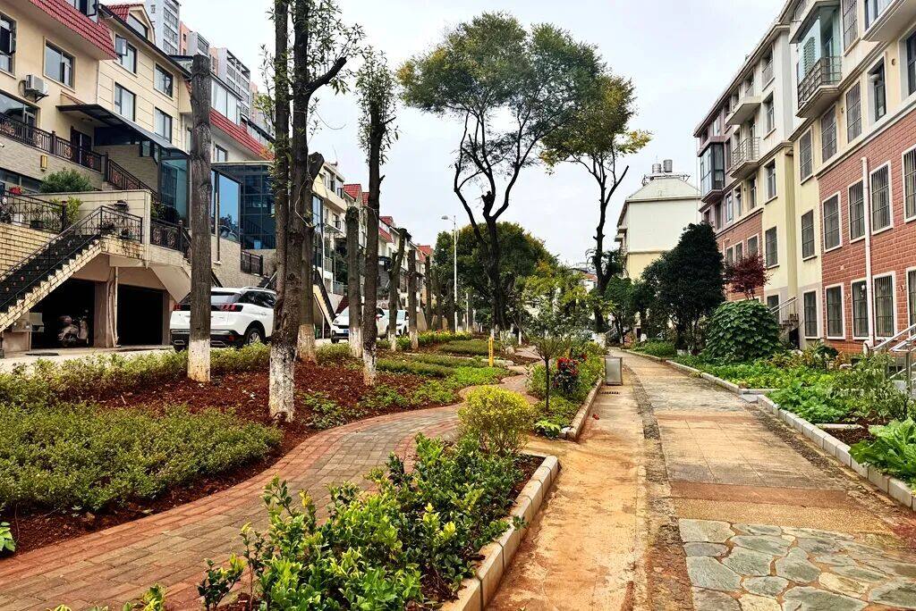 怡鸿小区建于上世纪九十年代,属宣威建设较早的居民区,2023年被列入老旧小区改造。改造过程中,施工方充分考虑居民的需求和生活习惯,升级了小区内道路、房屋外立面,同时增设休闲设施、优化停车位管理,让小区居民在家门口享受到实打实的便利。小区居民夏丽芬的房子改造后,居住体验大幅提升,她说:“门口原来是绿化带,现在改成贴石板,很漂亮。原来对面有围墙,围墙现在也拆了改成人行道、花园、停车场,人行道很宽,视野很开阔,居住很舒适。”
