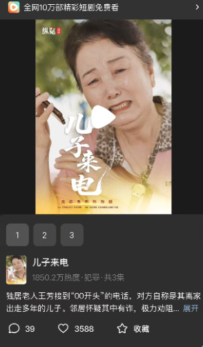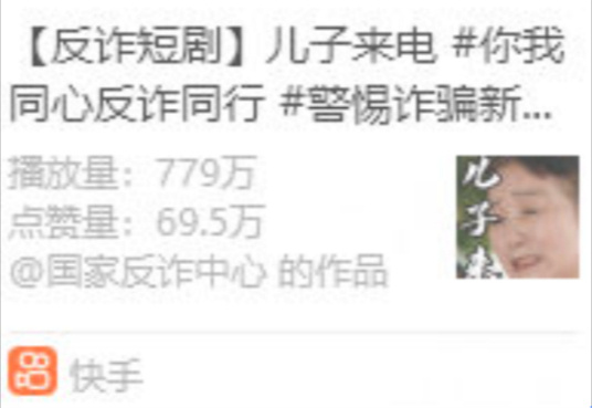 据了解,该剧是由纵览(河北)传媒有限公司与河北省公安厅联合出品,由纵览传媒笔尖短剧工作室摄制,该微短剧讲述了独居老人王芳被“儿子”诈骗的故事。微短剧于2025年9月在河北省公安厅新媒体账号、河北新闻网、纵览新闻客户端等平台首轮播出,微短剧一经播出就获得网友广泛关注,并在央视新闻客户端、新华社客户端、人民日报客户端等央媒播出,此外,微短剧还被推送到国家反诈中心,在国家反诈中心快手账号获得779万播放量、69.5万点赞量(截至2026年1月15日),一度登上快手热榜。该剧在红果短剧平台也收获较多关注,热度维持在1800万,红果网友“糖果pai”发表评论说:“这剧太接地气了,我奶奶就差点被骗过,幸亏及时发现。”网友“静谧兰香”也表示,很有教育意义。“微短剧的故事情节是虚构的,但灵感来源于公安部门真实案例,希望更多的人能看到这部剧,为大家起到警示作用。”该片导演、编剧解保童说。