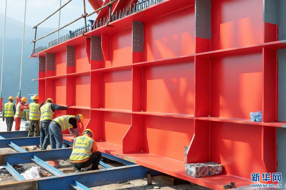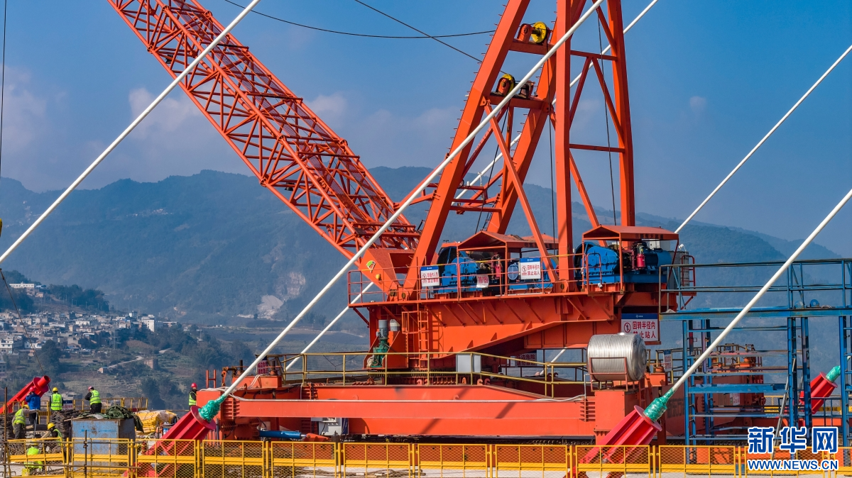 工人们在马鹿塘特大桥施工现场加紧作业(1月20日摄)。新华网发(熊平祥 摄)