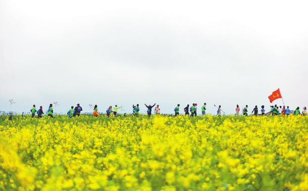 罗平县油菜花产业带动了文旅产业发展。图为2025年曲靖罗平马拉松赛,选手穿过油菜花田。 记者 黄兴能 摄