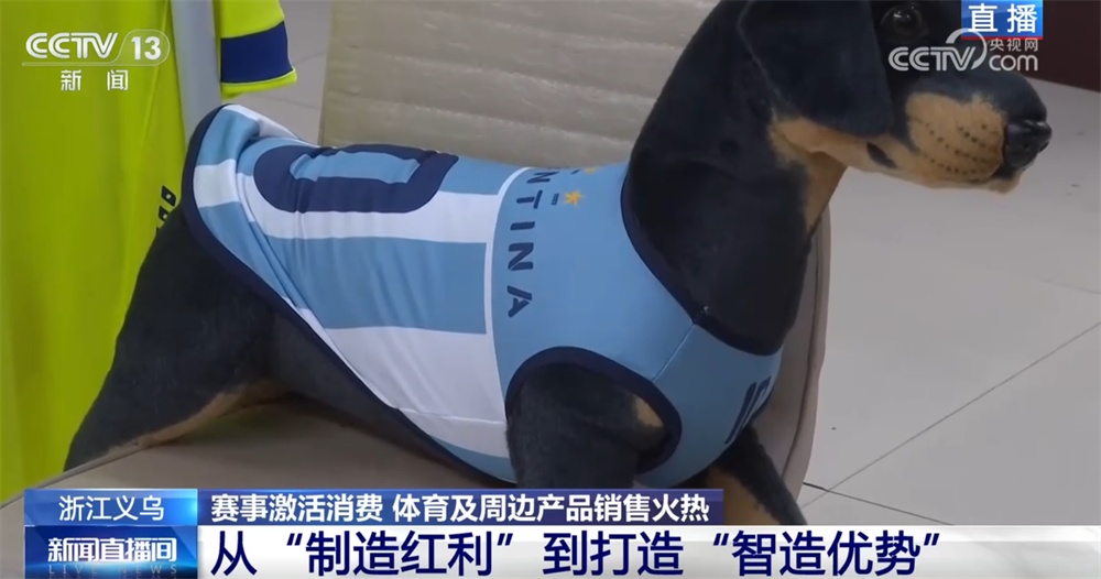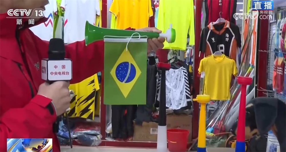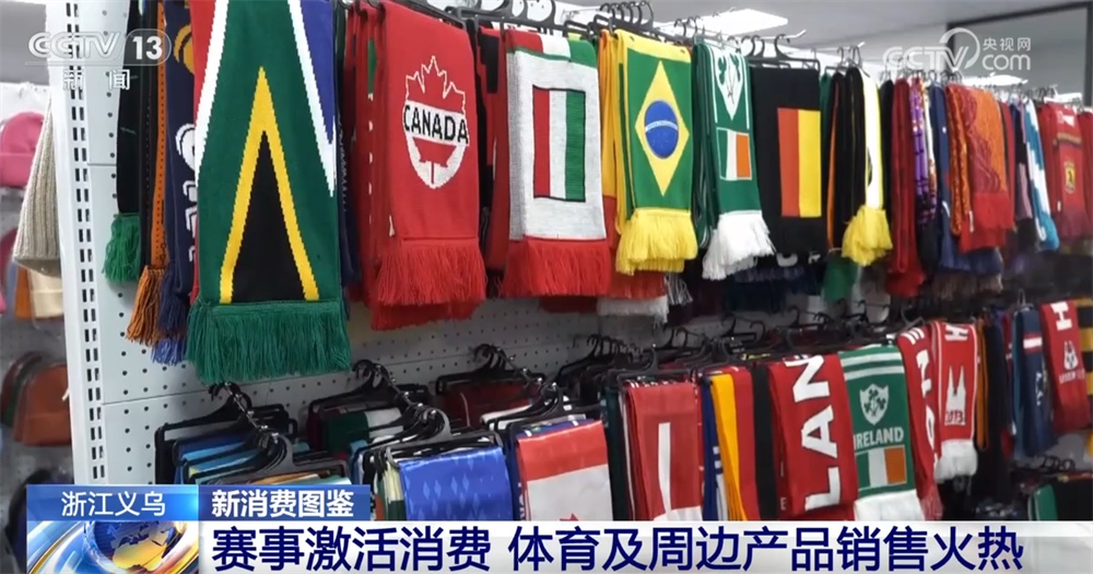 记者现在在义乌国际商贸城三区的体育用品专区,这家商户主营的是足球球迷服,大家还记得四年前的卡塔尔世界杯吗?当时这家店的老板通过观察各个参赛队球迷服的订单走势,特别是赛前那一波波的追单情况,成功预测了阿根廷队会夺冠!您看,体育经济和义乌市场之间就这样有了一次特别巧妙的联动。