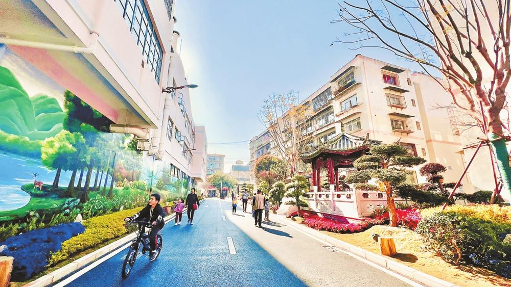冬日漫步澄江市马房村,农耕、捕鱼和牧马文化的墙画随处可见,转角处突然邂逅的美陈设计更显巧思;在红塔区共美家园小区,整齐划一的停车位与人车分流的健康步道相映成趣,这个老旧小区通过拆除有形围墙,实现了从老旧散到美宜居的美丽蜕变……