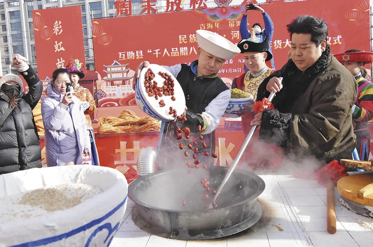 启动仪式上,巨型铁锅熬制着象征团结的“民族团结腊八粥”,邀请现场游客免费品尝,暖胃又暖心。同时,传统社火、舞龙舞狮、青海小调等非遗表演轮番登场,引得观众阵阵喝彩。