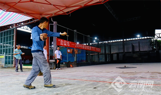 “啪——嗖!”一声清脆的鞭响,陀螺在赛场上飞速旋转。勐戛镇文化站球场人声鼎沸,来自各村寨的9支代表队、30余名选手参加“陀王争霸赛”日常训练。参训者中,既有年过七旬的老将,也有二十出头的年轻人,动作娴熟,引来观众阵阵喝彩。