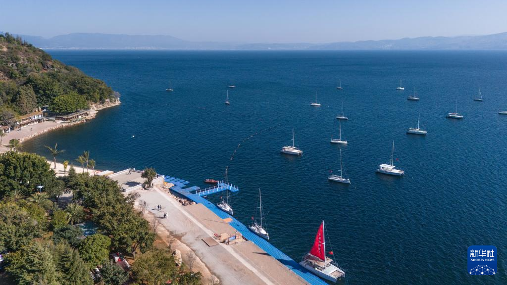 冬日抚仙湖碧波荡漾,风光宜人,吸引不少游客前来游览。