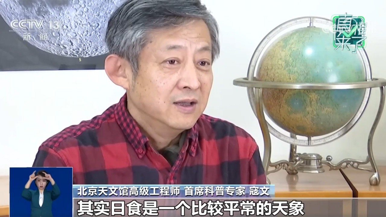 北京天文馆高级工程师、首席科普专家 寇文:其实日食是一个比较平常的天象,每年都会发生,一年至少要能够有两次。就跟一片云彩遮住太阳似的过去了,不会产生什么样的灾祸。网上有一种说法,8月12日那天会有失重,其实完全不必理会这种说法。