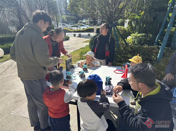 3D打印区小小机械人灵动起舞,引得围观居民阵阵惊叹,传统年俗与现代科技在此刻交响共鸣。趣味游戏环节更是引得居民踊跃参与,套圈夺宝、把福吸回家等项目“大朋友、小朋友”齐参与。