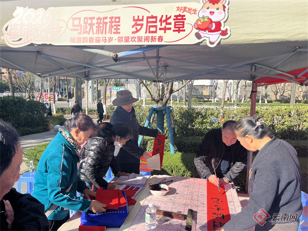云南网讯(记者 张梅焕)2月4日,昆明市西山区前卫街道佳锦社区精心组织开展了“翰墨飘香迎马岁,邻里欢聚闹新春”活动,为居民们带来了一场集文化、趣味、实用于一体的新春盛宴。