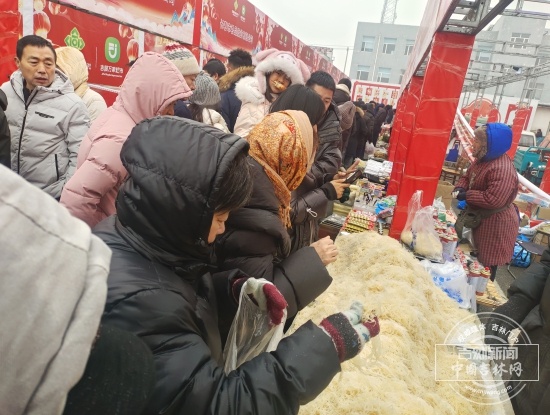 百余个摊位、几千种商品,从粮油冻货到对联花灯,人们拎着大包小袋穿梭其中。