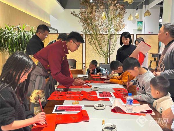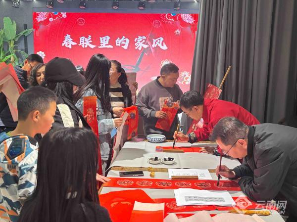 云南网讯(记者 李子楠 马芷荃)春节将至,万象启新。2月4日,由中共云南省委讲师团、云南出版集团、“学习强国”云南学习平台组织的“春联里的家风”主题宣讲活动在滇池书城举行。正值假期,不少市民、家长和孩子现场学习中国家风文化,体验“写一幅春联,传一份家风”,感受中华优秀传统文化的独特魅力。