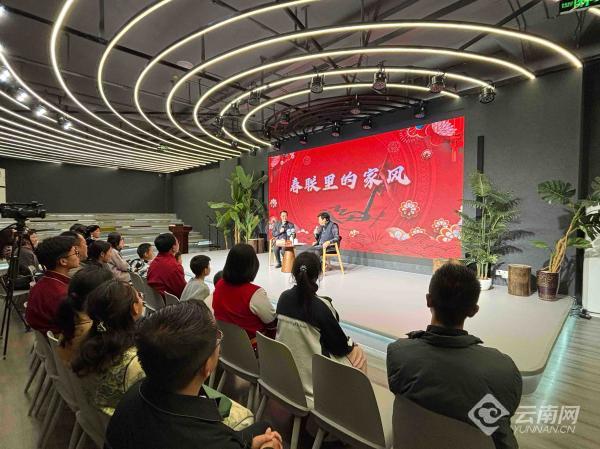 宣讲现场,主持人周怀君和宣讲员宁德锦以中国春联与家风建设的关系为切入点,以互动访谈方式带领现场听众了解中国传统楹联、对联、春联的文化特点,分享赵藩、窦垿等云南楹联大家的传世家风,解析春联中承载的勤俭、孝悌、诚信、清廉等价值观,解码蕴藏在春联中的家风文化及中华民族深沉的精神追求,倡导每个家庭重视家风家教,弘扬良好家风,以千千万万家庭的好家风支撑起全社会的好风气。