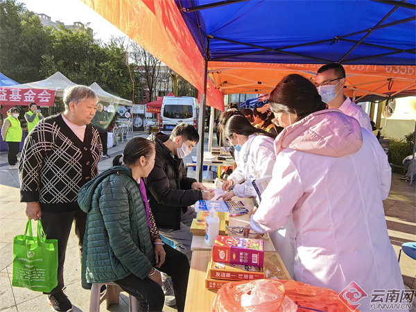 年货集市也热闹开街,数十家优质商家带着新春特色年货而来,为居民提供一站式年货采购服务。公益健康义诊区域,专业的医护团队为居民提供免费健康咨询、血压血糖检测、常见病筛查等便民服务,更为群众带来健康养生知识科普服务。云南晓圣公益基金会为社区老年群众和儿童送来新春物资,传递公益温暖。系列新春活动的开展,带动更多辖区群众在互动游戏中感受节日喜悦,在便民服务中感受温暖关怀,在文化体验中深化情感共鸣,拉近了邻里距离,增进了社区文明。