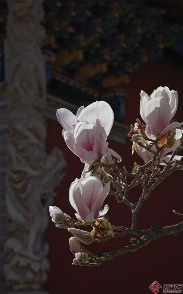 随着气温回暖,昆明圆通山、金殿、西山森林公园玉兰园等景区玉兰花竞相绽放,迎来最佳观赏期。洁白、淡紫的花朵缀满枝头,与红墙古建、苍松翠柏相映成趣,构成一幅幅清新雅致的春日画卷,吸引大批市民游客前来踏青赏花、拍照打卡。