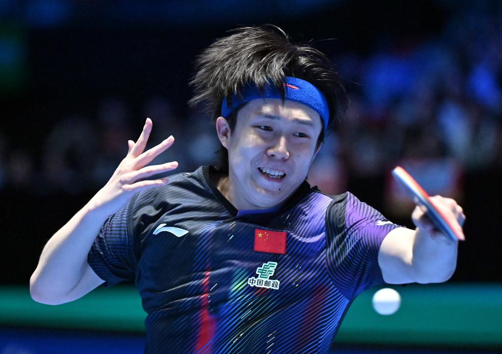 2月5日,王楚钦在比赛中回球。新华社记者 郭程 摄