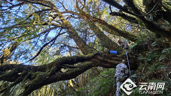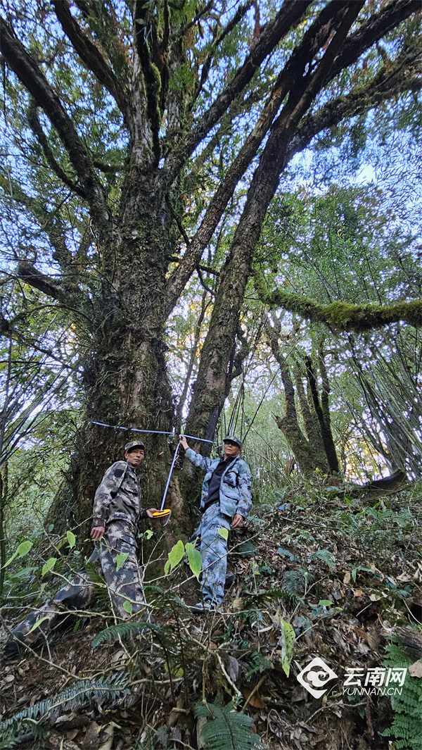 据介绍,该片区是凤庆县喜马拉雅红豆杉的主要生长分布区,主要生长在海拔2500米至3000米之间,呈散生带状分布,初步统计辖区内有野生喜马拉雅红豆杉1000株以上。此次调查监测共建立样地3块,并对样地内的8株喜马拉雅红豆杉进行重点调查监测及分析,其中最大的一株树高约12米、胸围4.3米、胸径达1.37米,预估树龄近“千年”;其余七株胸围均在2米以上,预估树龄在500-800年区间。
